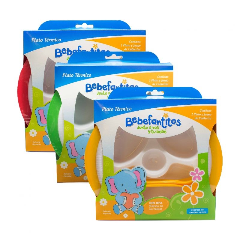 Plato térmico con divisiones y cubiertos. Colores surtidos