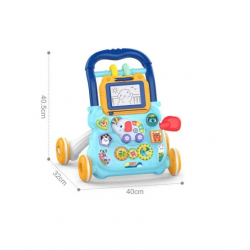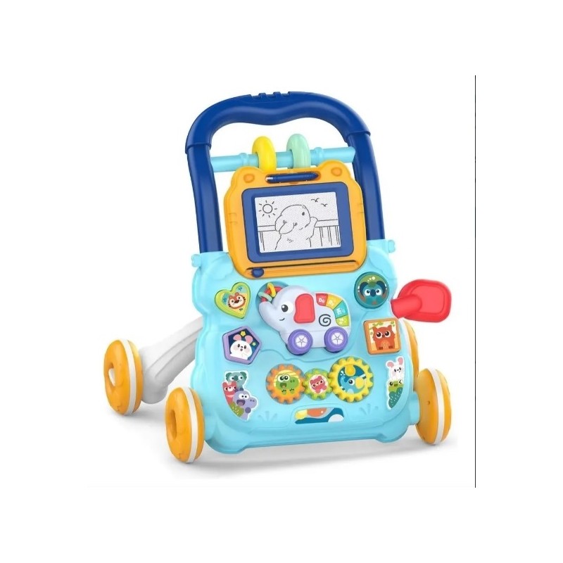 Divertido caminador, para acompañar los primeros pasos del bebe. Con pizarra mágica, centro de actividad con sonidos, luces y juegos interactivos. Estimula el equilibrio, la coordinación y la motricidad fina. Medidas: 40.5 cm de alto, 40 cm de alto y 32 cm de profundidad.
